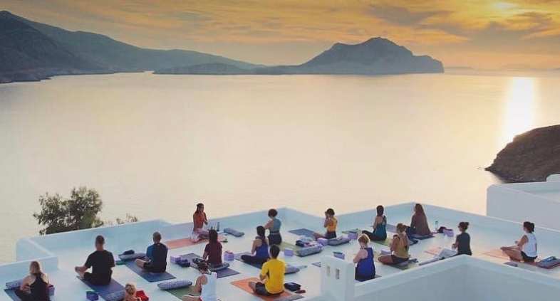 Picture ruggedly stunning Amorgos, the easternmost island of the Cyclades group, known for its cobalt waters, wild nature and blinding-white architecture, its “special energy” and the memorable movie set of Luc Besson’s ‘The Big Blue’. Then add to that a sprawling, elegant, family-run hotel standing on the hillside of sparkling Aegiali Gulf, with a spa called Lalon Idor and a restaurant called Ambrosia and terraces facing the sea. And finally sprinkle that with some of the world’s best, most experienced and scintillating yoga teachers, musicians, holistic practitioners, organisers and participants coming from near and far in pilgrimage-mode and you have the annual Elysia Yoga Convention. Entering its third year as of March 28th and until April 4th, this remains the only event of its kind in Greece.